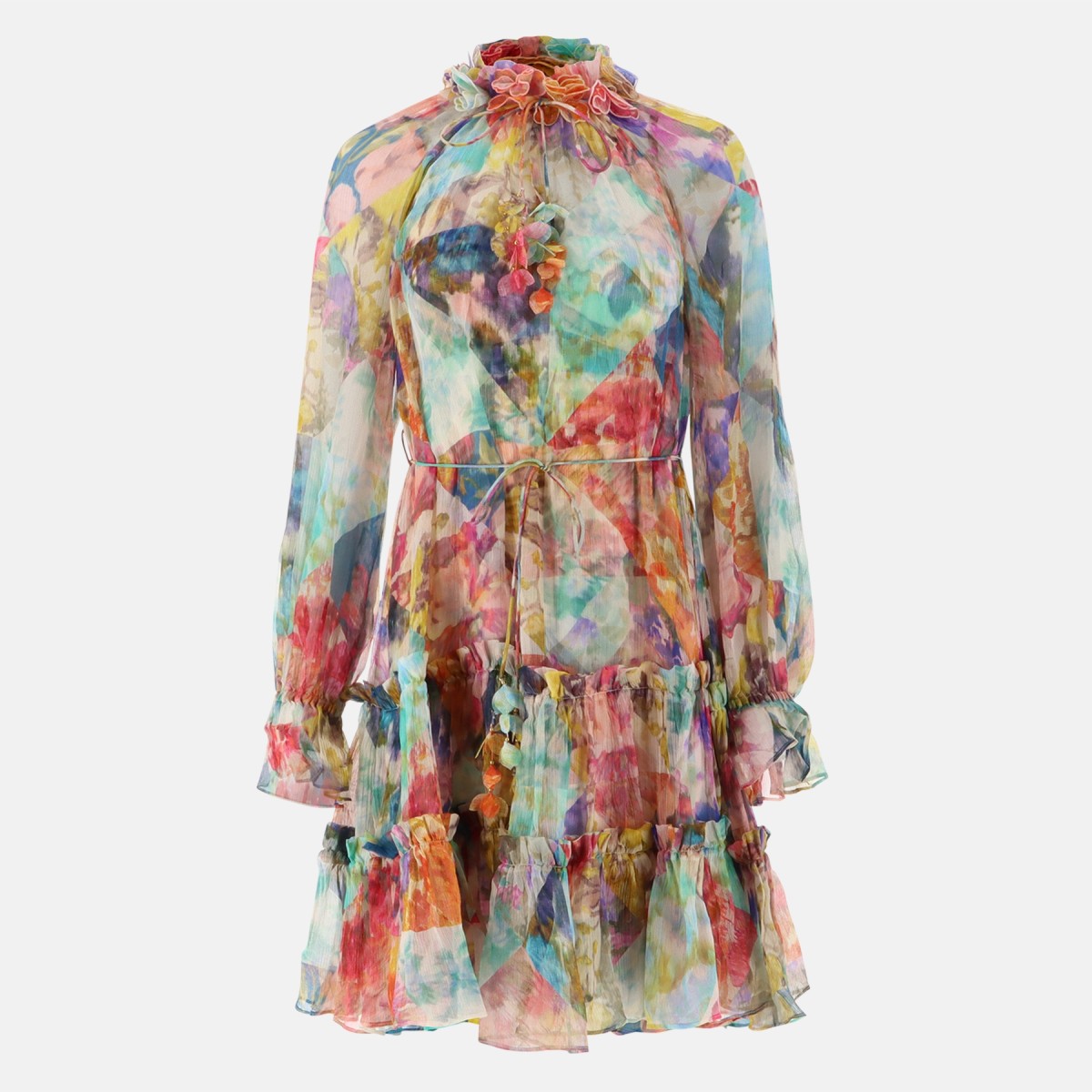 Sind Sie auf der Suche nach einem wunderschönen Kleid, das Ihrem Tag einen Hauch von Farbe und Stil verleiht? Dann suchen Sie nicht weiter als nach dem Zimmermann-Kleid. Dieses kurze Seidenkleid ist aus hochwertigen Materialien gefertigt, in denen Sie sich den ganzen Tag lang wohlfühlen werden. Das Blumenmuster ist ein Blickfang und der geraffte Ausschnitt macht es leicht, das Kleid zu binden. Ob Sie ins Büro gehen oder für einen Abend in der Stadt ausgehen, mit diesem Kleid werden Sie sich von Ihrer besten Seite zeigen.