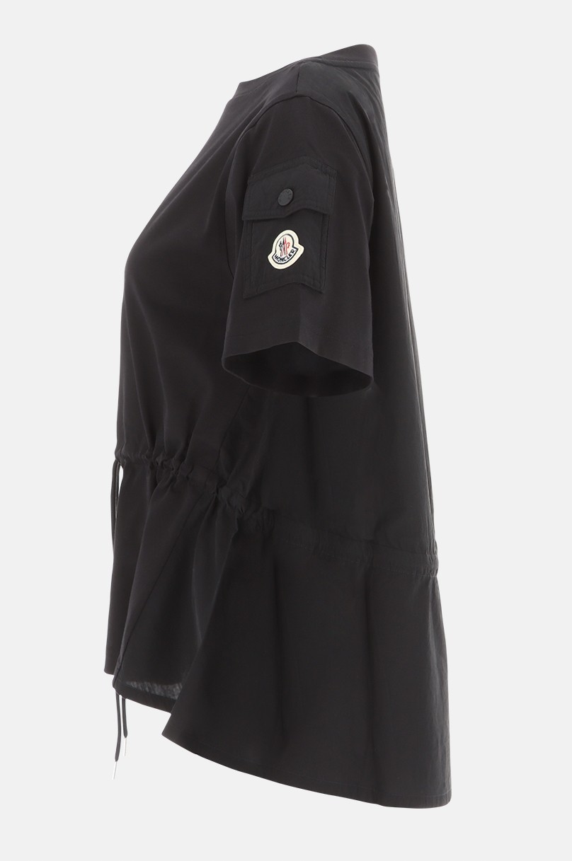 Ein einzigartiges Merkmal dieses T-Shirts ist die Ärmeltasche, die mit einem Druckknopf geschlossen wird, und der Kordelzug in der Taille, der einen Hauch von Stil sowie eine perfekte Passform verleiht.