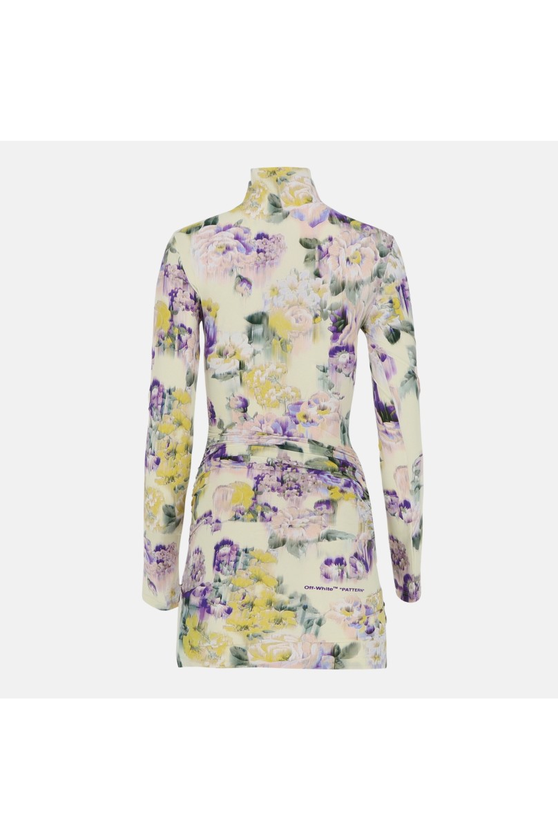 Introducing the Off-White Dress - the perfect dress for any special occasion. This elegant and stylish piece features ruching details, a high neckline, long sleeves and a short cut to give you a flattering and elegant look. With its timeless design, you can dress it up or down to suit the occasion. For a sophisticated evening look, pair it with a beautiful bag.