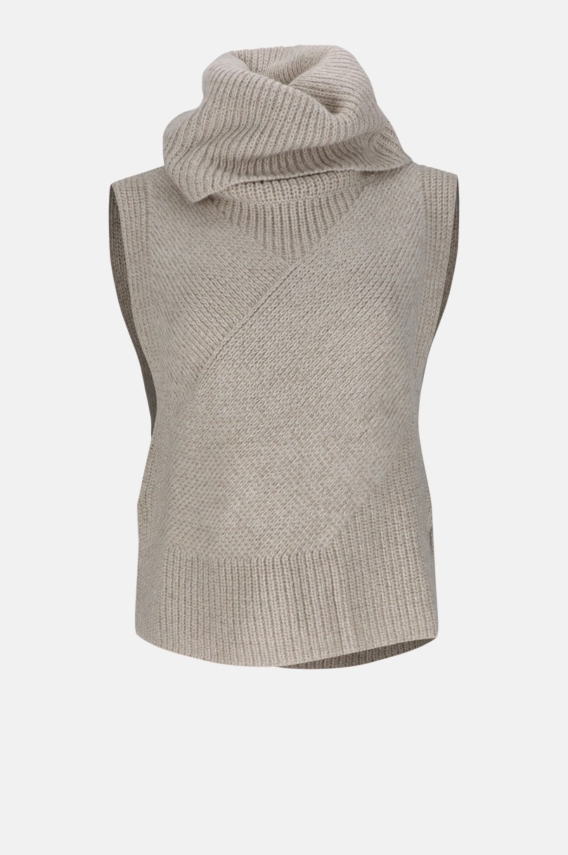 This sleeveless Vania sweater is perfect for cooler days. Crafted in a quality tightened knit, this sweater offers a soft, comfortable texture. Its large turtleneck adds a touch of class to the piece, while offering extra protection against the cold, wrapping your neck in style.