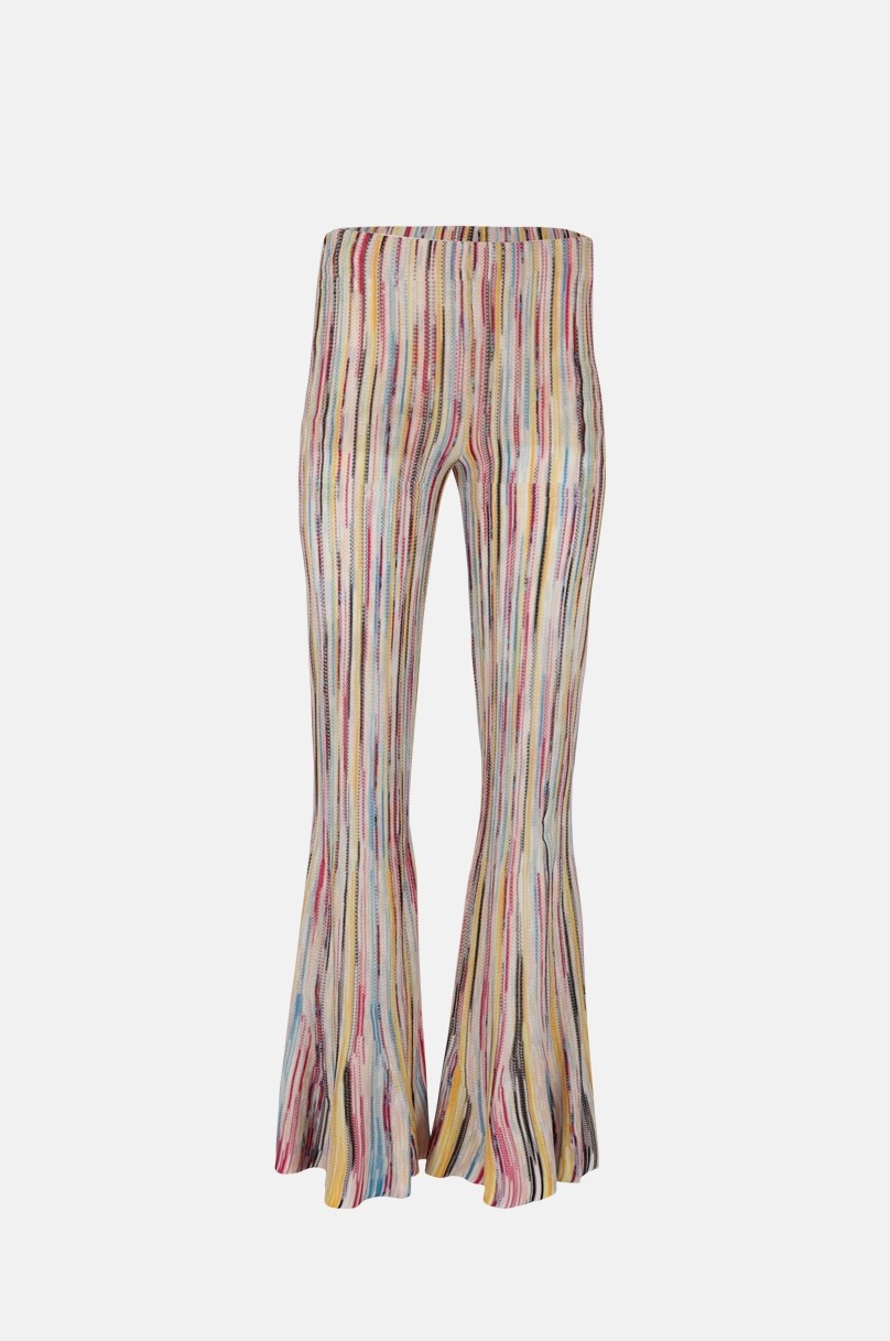 Missoni's long pants in lightweight viscose-blend knit are a masterpiece of comfort and style. Made from a high-quality viscose blend, these pants offer a soft, lightweight feel that makes them comfortable to wear all day long. Intersecting vertical stripes are the key element of these pants. They add a captivating visual dimension and create a rhythmic, elegant pattern. The lightweight knit offers a subtle texture that adds richness and sophistication to these pants. With their long cut, these pants are both trendy and versatile.
